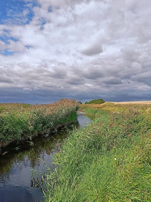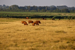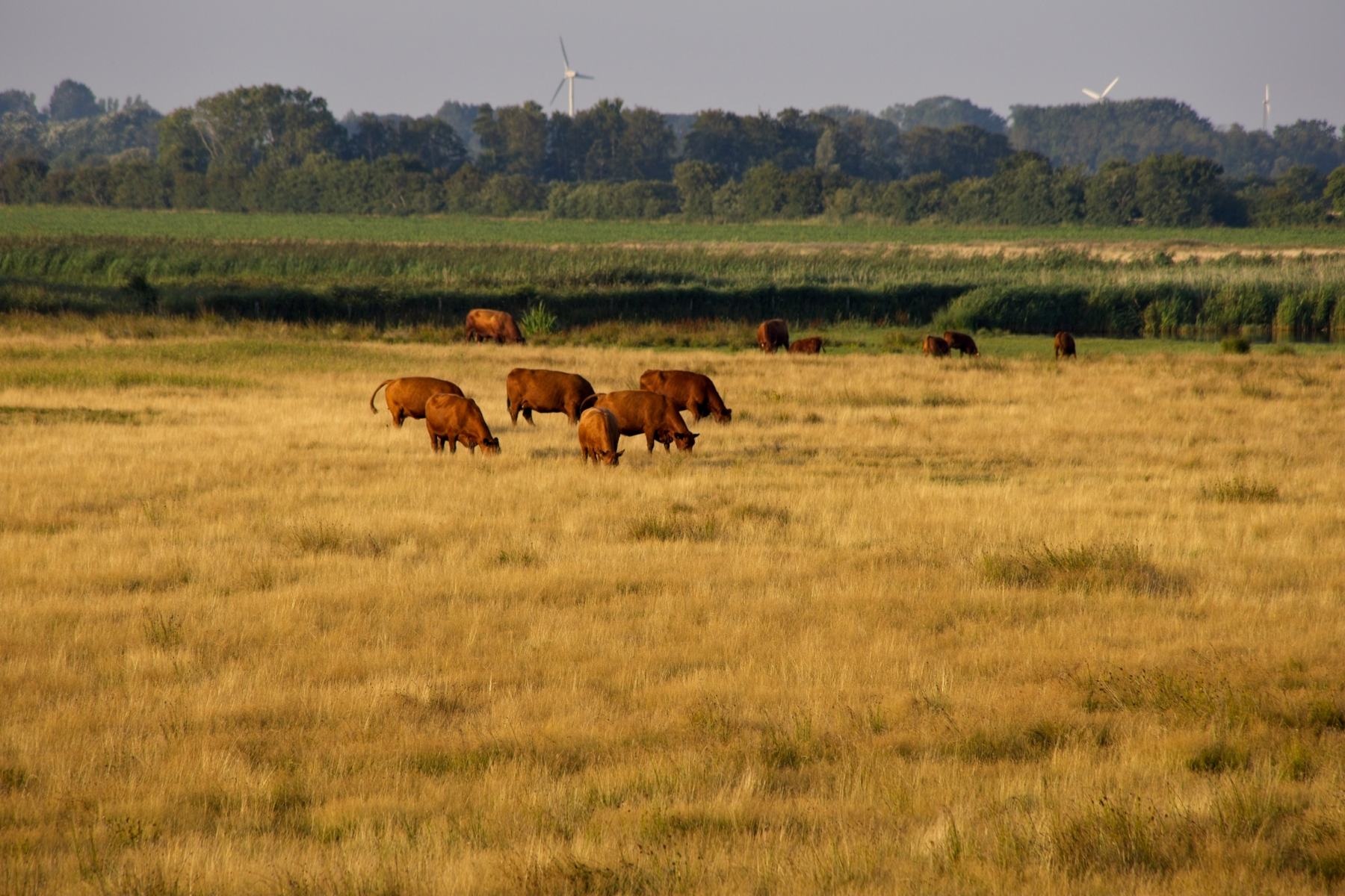 Nachmittags fuhren wir nur wenige Kilometer weiter zum Parkplatz des Naturreservats. Gleich bei unserer Ankunft sahen wir zwei Seeadler kreisen. Der Wind ließ nach und eine Kuhherde kam in die Nähe.