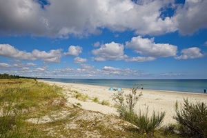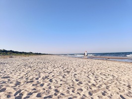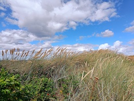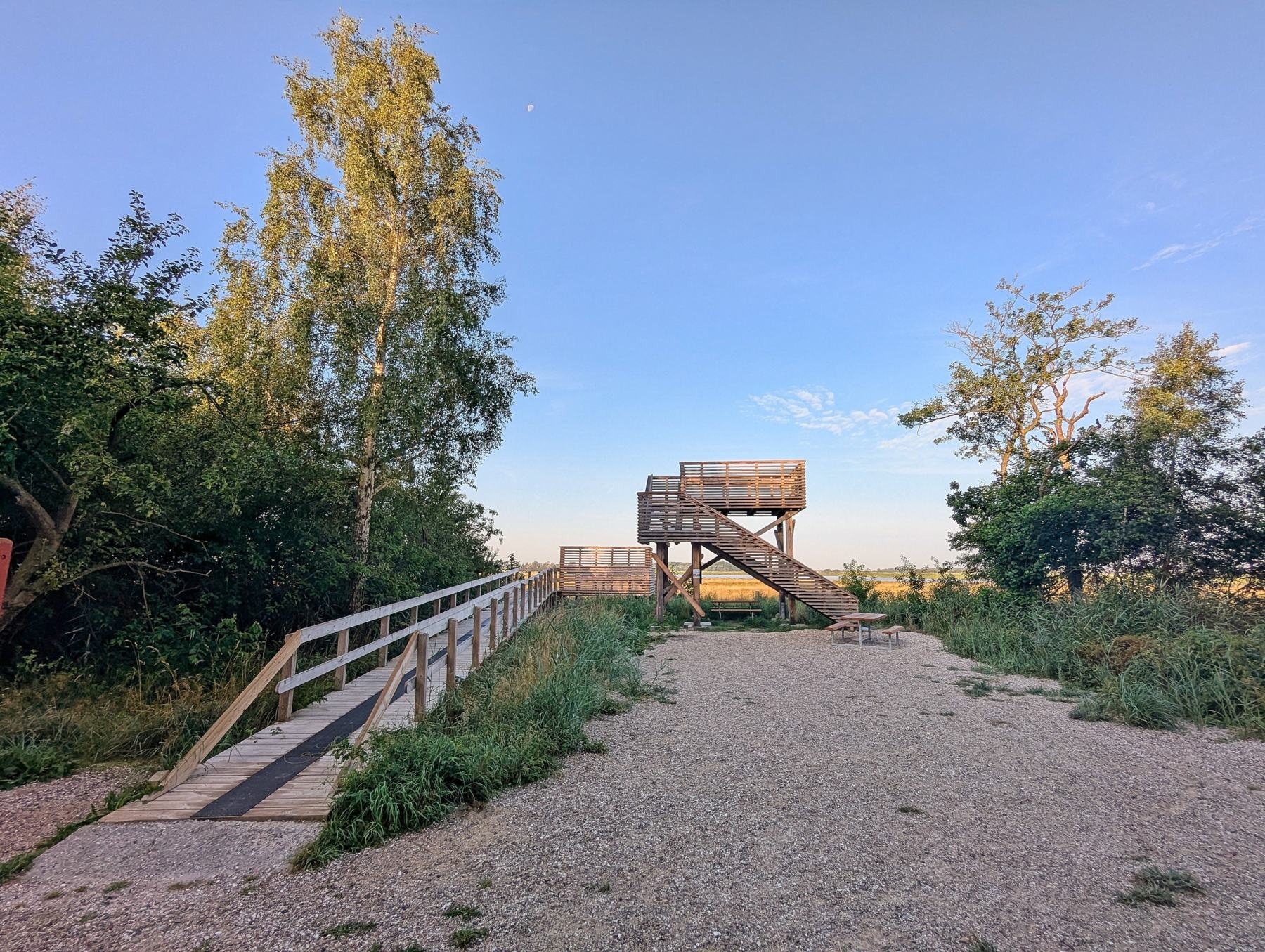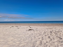 Wir wachten früh auf und machten einen Morgenspaziergang zum Vogelbeobachtungsturm. Anschließend hängten wir noch eine kleine Runde durch den Wald an, doch außer frischen Hufspuren konnten wir keine Pferde entdecken. Dafür war wirklich alles mit Spinnweben überzogen. Danach besuchten wir erneut den Strand, bevor wir am späten Vormittag unsere Fahrt fortsetzten.