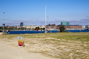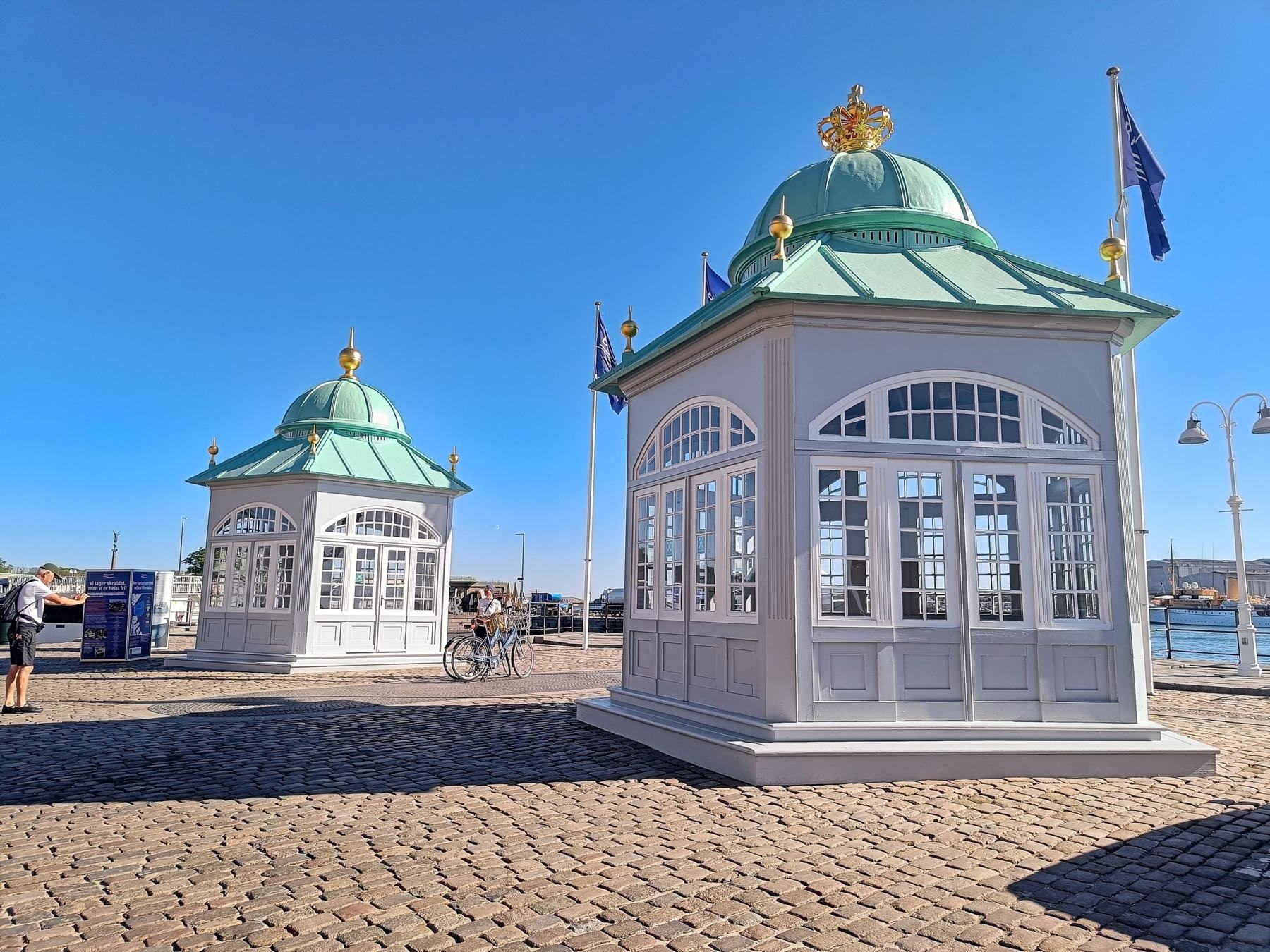 Der Morgen war windstill, wir füllten unsere Kanister am Wasserhahn beim Unterstand auf, bevor wir nur etwa 15 Minuten zum Hafenparkplatz beim Kronborg Slot in Helsingör fuhren.
