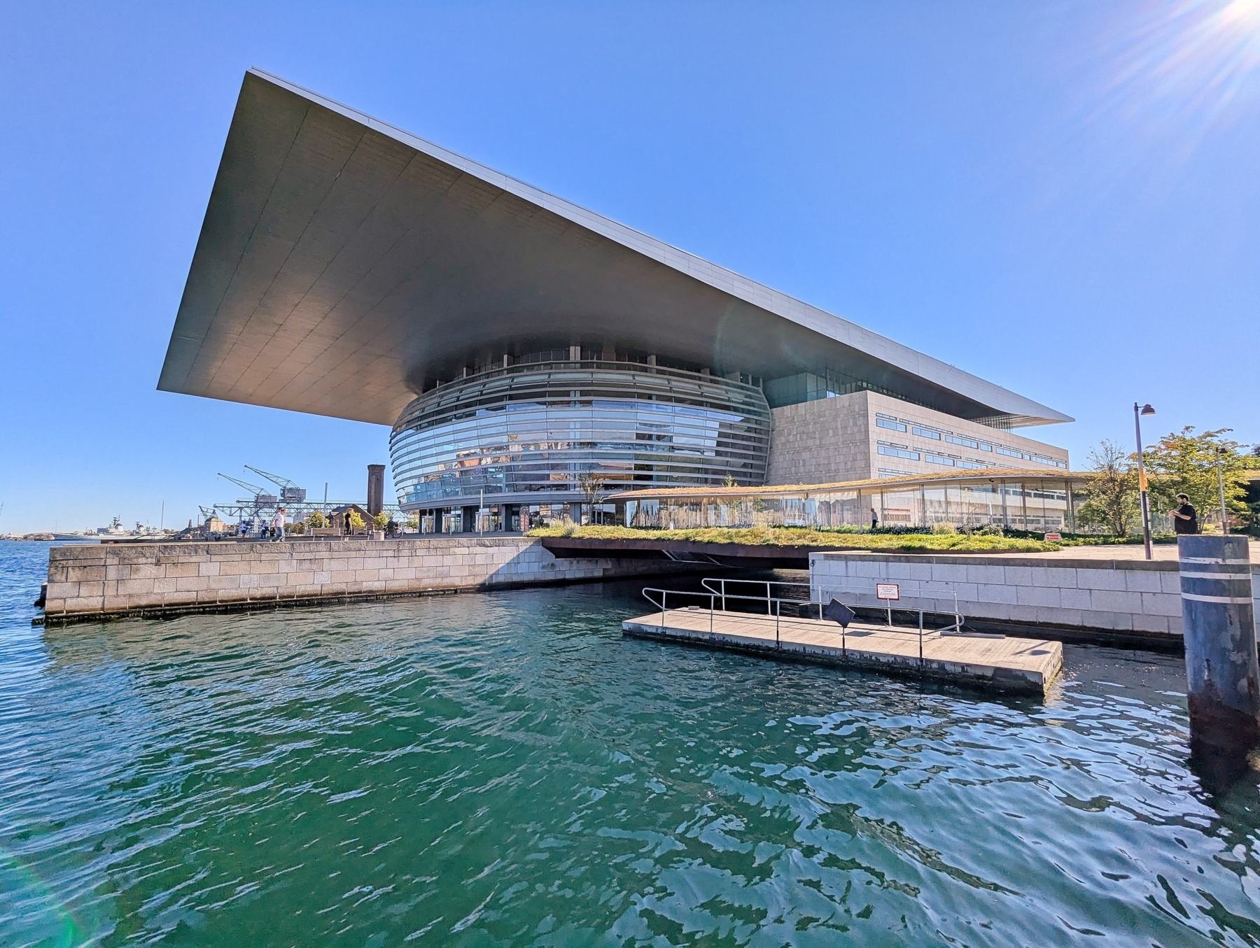 Mit dem Bus 2A fuhren wir zu den Refshalleøen und nahmen den Hafenbus bis zur westlichen Endstation Tegelholmen, von wo aus man die beeindruckende Architektur vom Wasser aus bewundern kann.