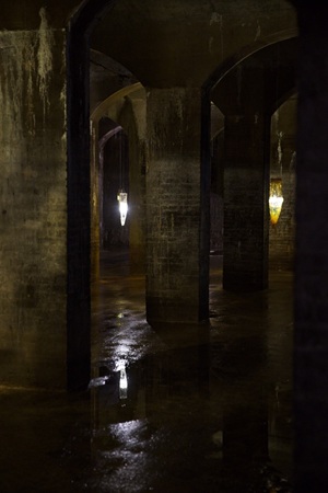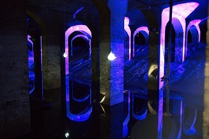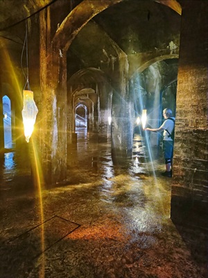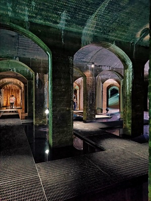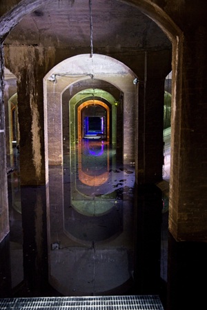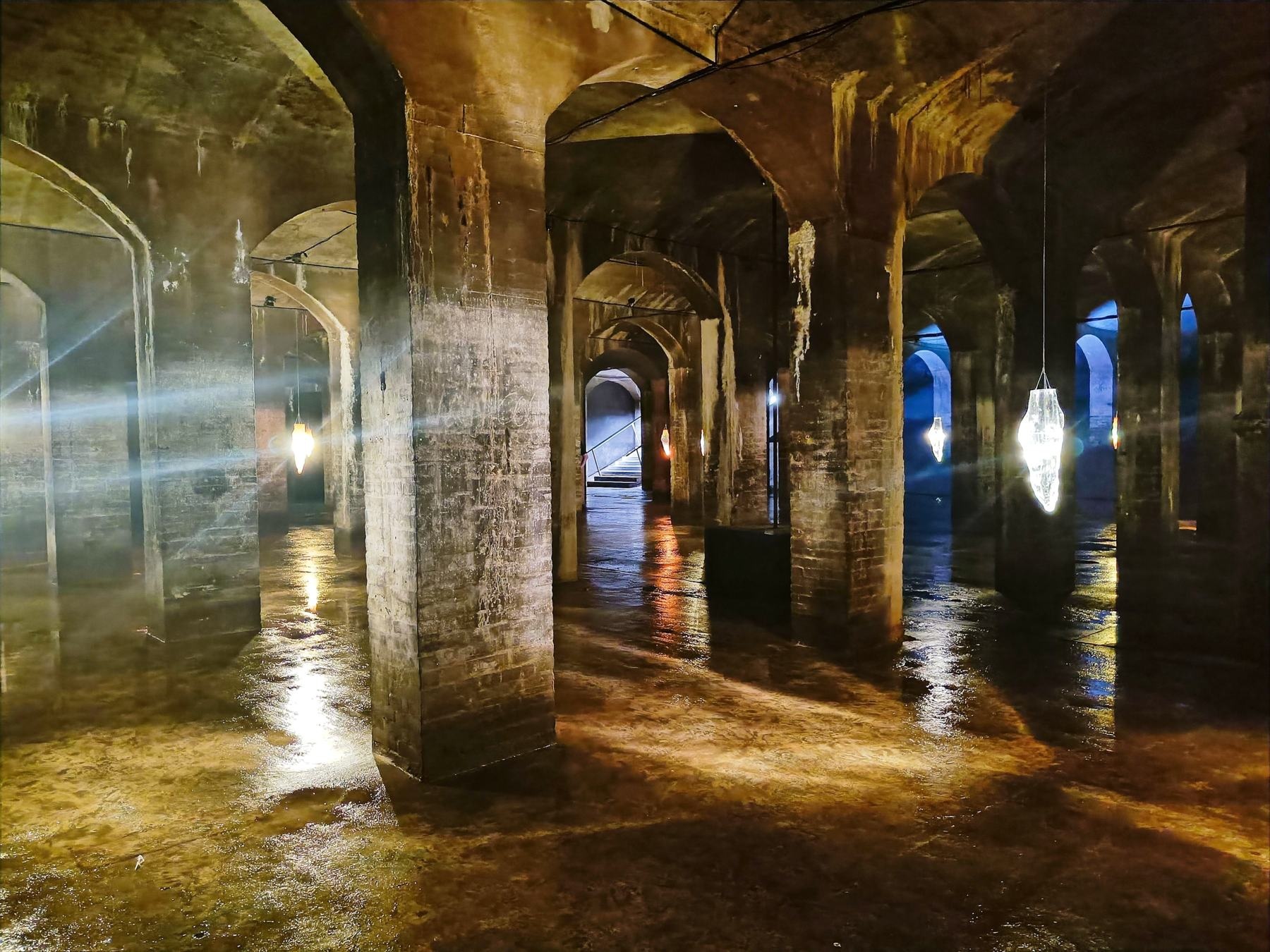 Nach einer kurzen Rast fuhren wir mit U-Bahn und Bus zurück zum Frederiksberg Slot und besuchten die Cisterne im Park – eine Untergrundausstellung mit Licht- und Musikinstallationen.