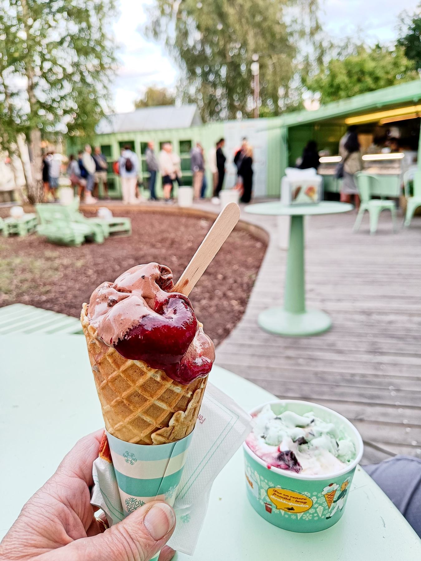 Am frühen Nachmittag fuhren wir mit dem Bus zurück zum Wohnmobil, machten eine Pause und erholten uns. Am Abend gingen wir dann etwas weiter zur 2A-Busstation, die uns nach Reffen brachte, wo wir uns wieder ein köstliches Eis gönnten. Anschließend fuhren wir mit dem Bus direkt zum Hauptbahnhof und gingen erneut in den Tivoli.