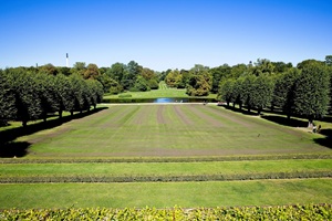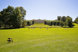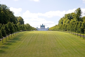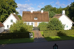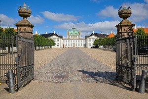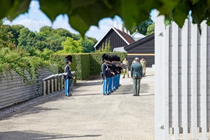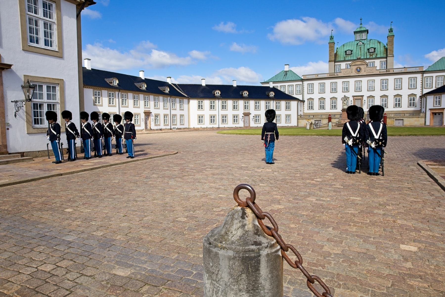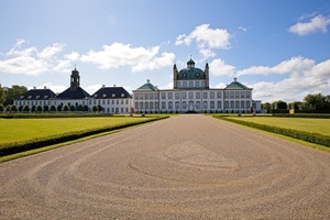 Weiter ging es zum Parkplatz in Fredensborg, von dem das Schloss etwa 1,3 km entfernt war. Wir gingen durch eine Schafweide, gelangten in den Schlosspark und erreichten die Vorderseite von Fredensborg, wo gerade der König residierte.