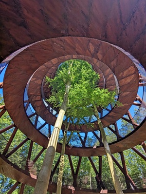 Dort bezahlt man Eintritt für einen 3,2 km langen Rundweg, der auch den beeindruckenden 45 Meter hohen Metallturm mit toller Aussicht umfasst.