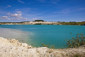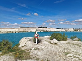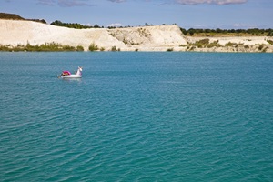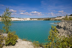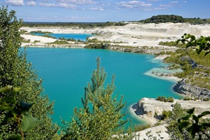 Am frühen Nachmittag suchten wir in Faxe beim Visitor Center vergeblich nach einem Parkplatz, fanden aber schließlich einen am Rand der Kalkgruben. Wir spazierten durch die riesige Kalkgrube und bestaunten das karibikfarbene Wasser der Kalkseen.