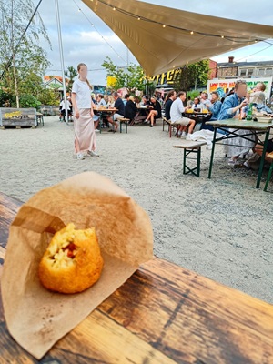 Später fuhren wir weiter zu den Refshalleöen, spazierten das letzte Stück und suchten einen freien Platz. Wir genossen Arancini (Reisbällchen) und Fish and Chips, relaxten in den Strandsesseln und gönnten uns zwei Kugeln eines hervorragenden, aber sündhaft teuren Eises.