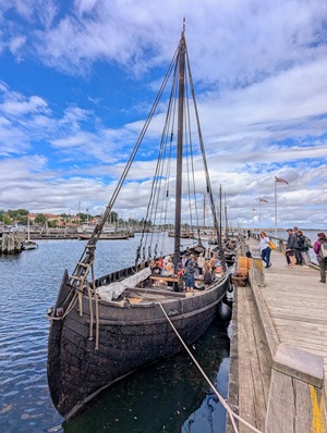 Sehr früh fuhren wir nach Roskilde zum Parkplatz Havn, direkt neben dem Wikingermuseum. Wir erkundeten den zugänglichen Außenbereich und frühstückten, bevor das Museum um 10 Uhr öffnete. Es war wirklich schön und interessant, die Ausstellungen zu sehen.