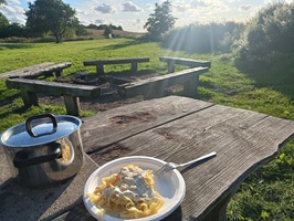 Nach dem Kochen verbrachten wir den Abend bei unterhaltsamen Gesprächen mit einem netten Camperpärchen.