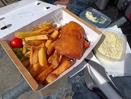 Später spazierten wir in den Ort, kauften einige Mitbringsel und gönnten uns hervorragende Fish and Chips. Für das Abendessen nahmen wir eine geräucherte Makrele mit. Am Nachmittag machten wir einen kurzen Spaziergang auf den Hügel.