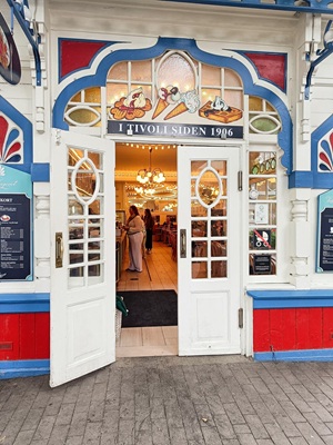 Unser erster Halt war die Nationalbibliothek. Von dort spazierten wir durch die Gassen bis zum Radhusplads, wo wir das wirklich sehenswerte und saubere WC nutzten, ehe wir zum Haupteingang des Tivoli gingen.