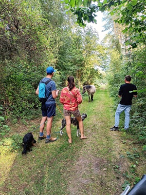 Nach einer Mittagsrast machten wir uns auf den Weg zur Brücke mit den Holzriesen und kamen dabei an einigen Hochlandrindern vorbei (ca. 2,4 km).